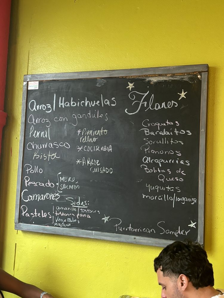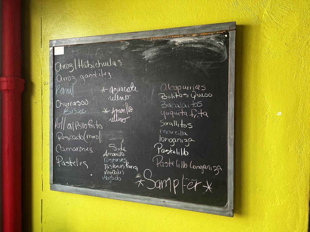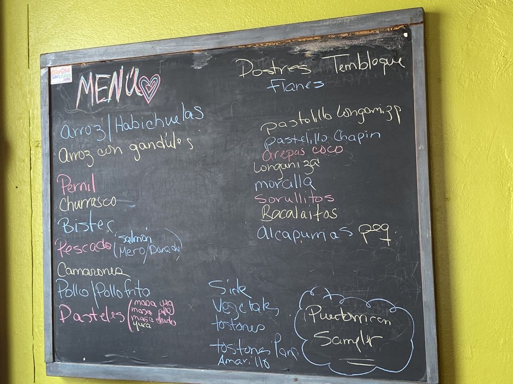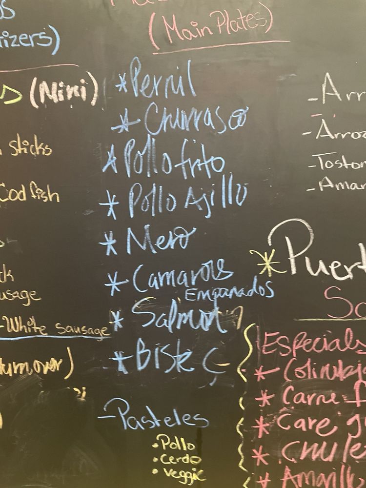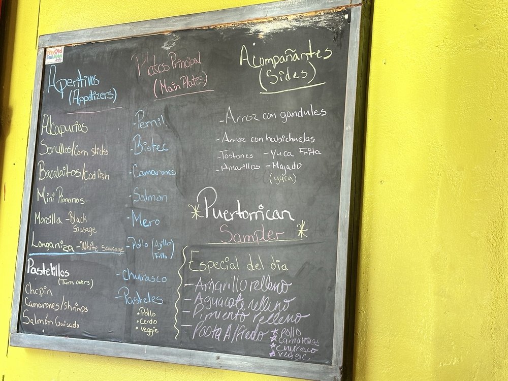 Customer reviews highlight the flavorful dishes, such as the shrimp main entrée, catch of the day, and delicious fried fritters. The menu, displayed on a blackboard in Spanish, adds to the charm of the place. The friendly staff is always ready to help explain the dishes and make recommendations.
