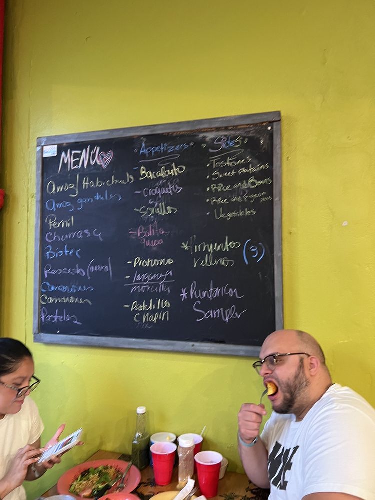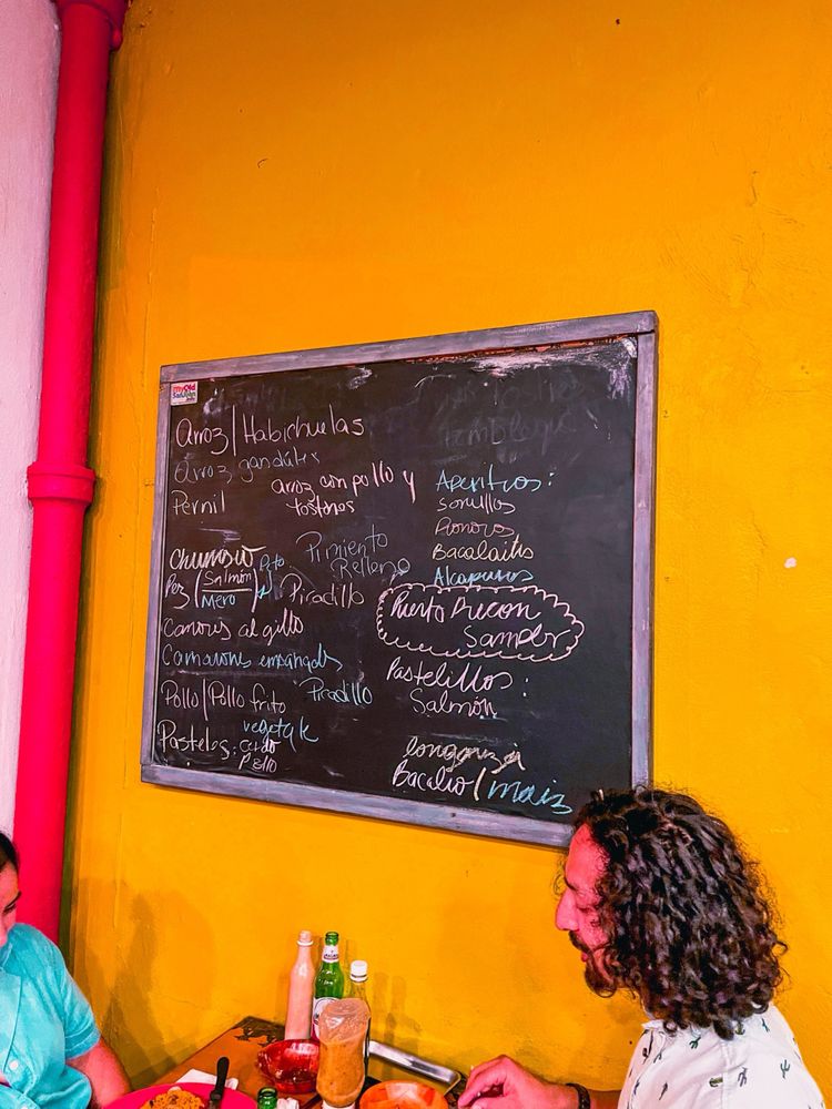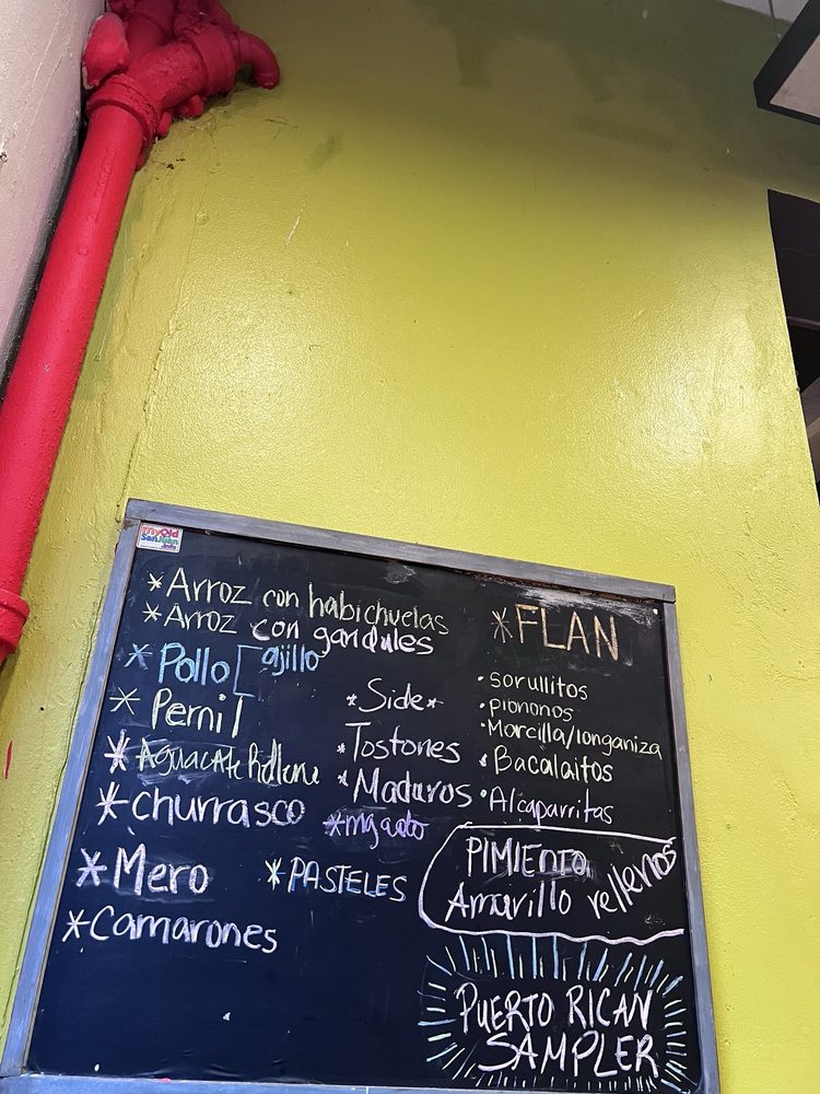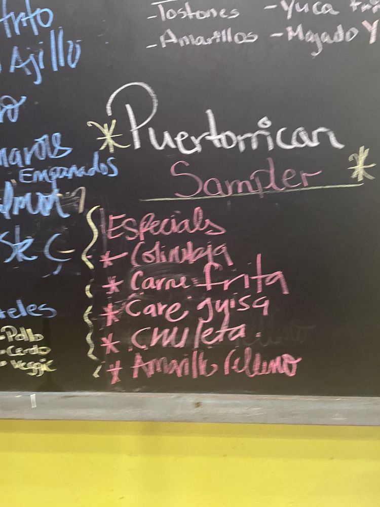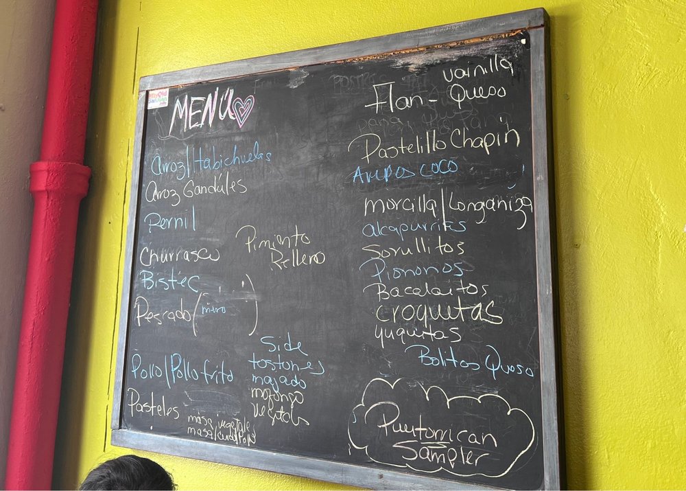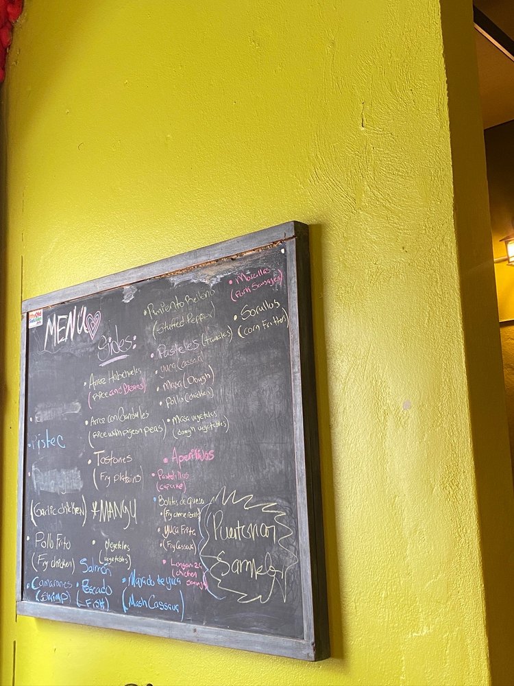 Customer reviews highlight the flavorful dishes, such as the shrimp main entrée, catch of the day, and delicious fried fritters. The menu, displayed on a blackboard in Spanish, adds to the charm of the place. The friendly staff is always ready to help explain the dishes and make recommendations.